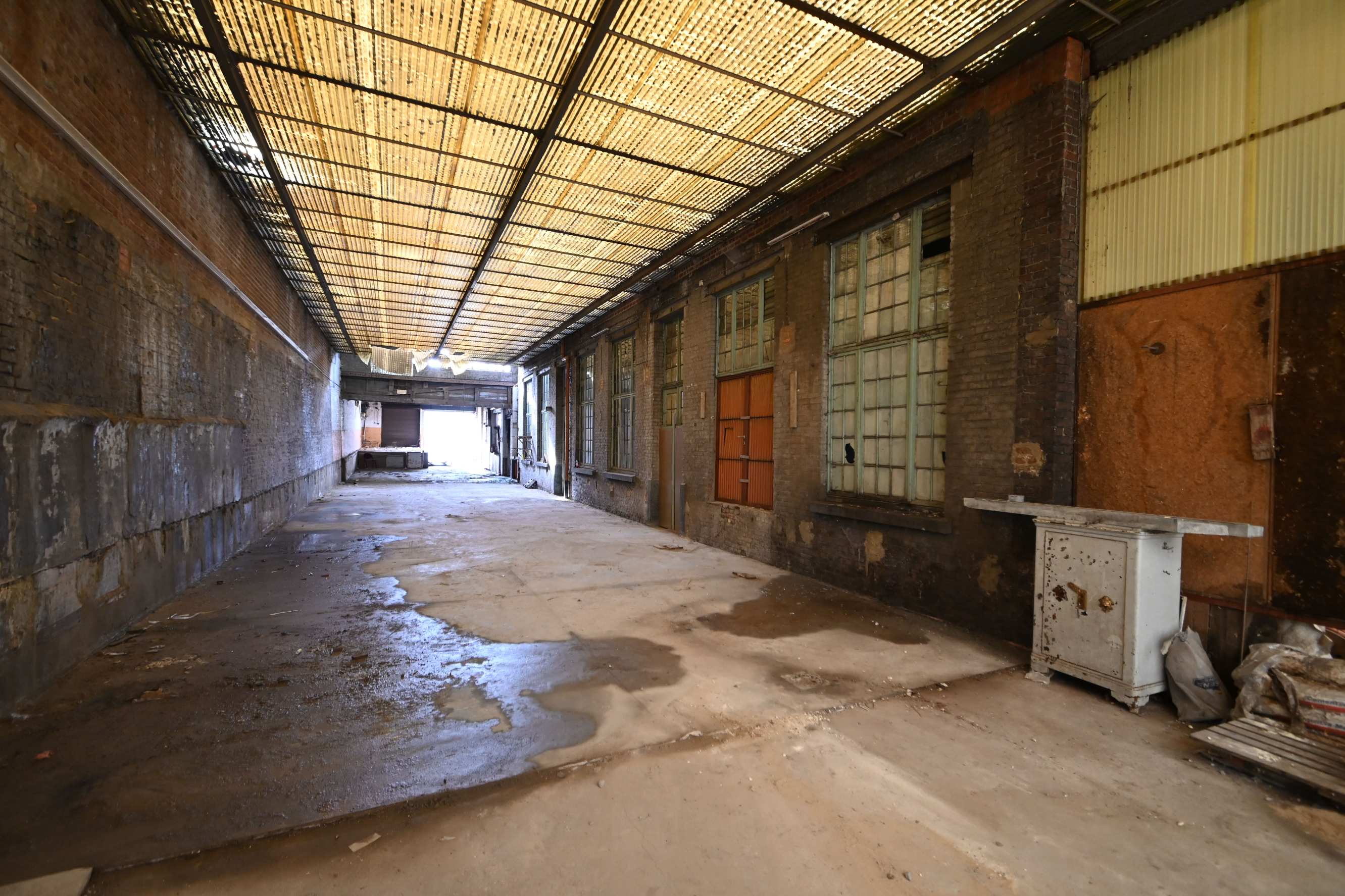 - Deux entrepôts (+-265m2 et +- 300m2), suite à un incendie une partie de la toiture est à rénover.
